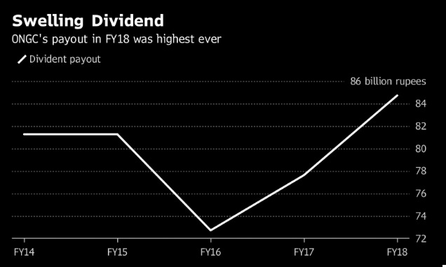 ONGC最大的股東總理Narendra Modi的政府一直在攻打包括印度最大的能源探險家在內的國有公司,以彌補其財政赤字。在這個公司被命令增加投資以幫助削減美國原油進口量的時候,這使該公司的資金枯竭。ONGC上個財政年度支付了4260億盧比作為政府的股息,并購買其在煉油廠的股份。
