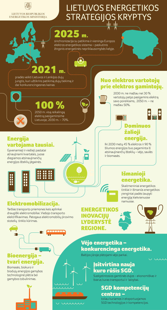 更新后的戰略預計到2030年 45%耗電量甚至達到90%。熱能將由可再生能源產生。2050年 立陶宛消耗的所有電力和熱量將來自可再生能源和其他非危險源??稍偕茉磳⑦_到80%。立陶宛消耗的所有能源。