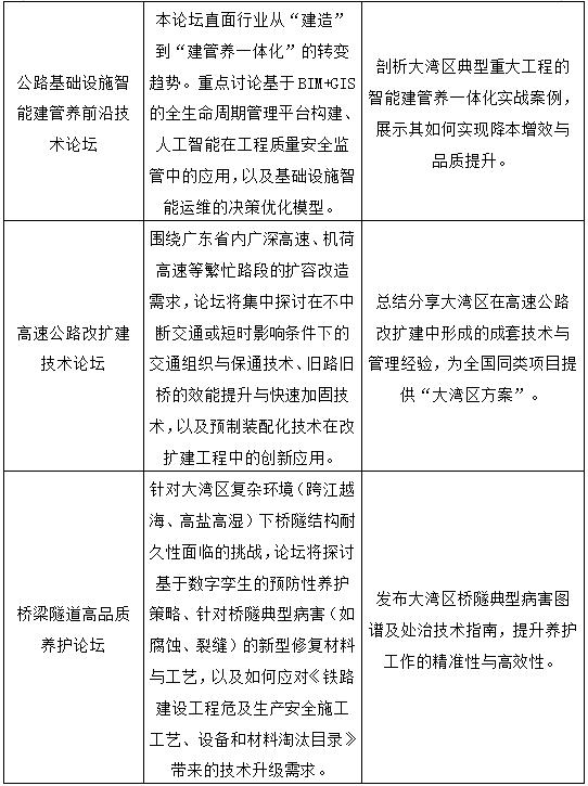我們誠摯邀請國內(nèi)外行業(yè)機構(gòu)、科研院所、建設單位、設備制造商、技術服務商等各方代表踴躍參與,共同展示新技術、交流新理念、拓展新合作,攜手把握大灣區(qū)發(fā)展機遇,賦能公路行業(yè)邁向更高質(zhì)量、更有效率、更可持續(xù)的未來!