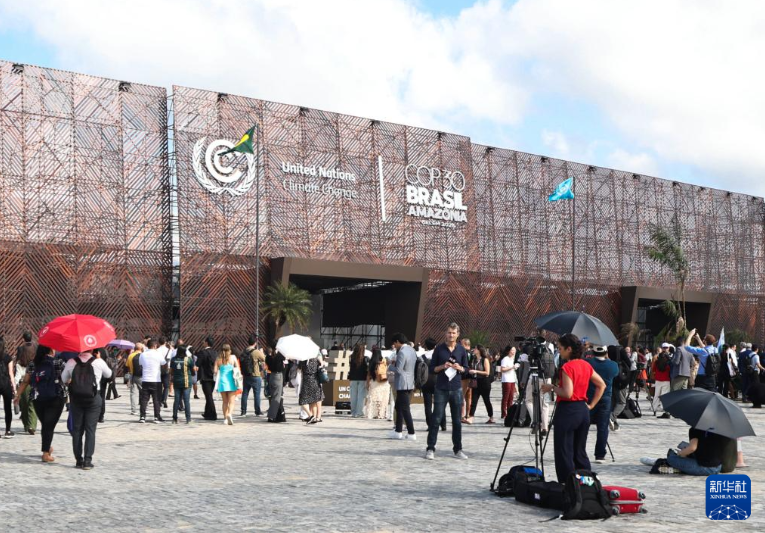11月10日,在巴西北部城市貝倫,與會代表進入《聯合國氣候變化框架公約》第三十次締約方大會(COP30)會場。新華社發(克勞迪婭·馬爾提尼攝)
