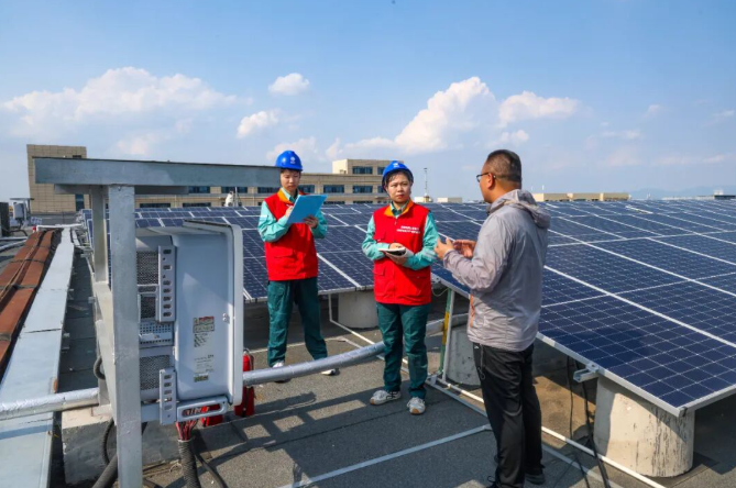 國網(wǎng)濟(jì)南供電公司工作人員在全省首家“光伏+儲能”虛擬電廠—濟(jì)南高新虛擬電廠開展現(xiàn)場服務(wù)
