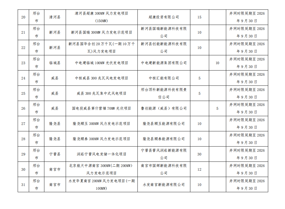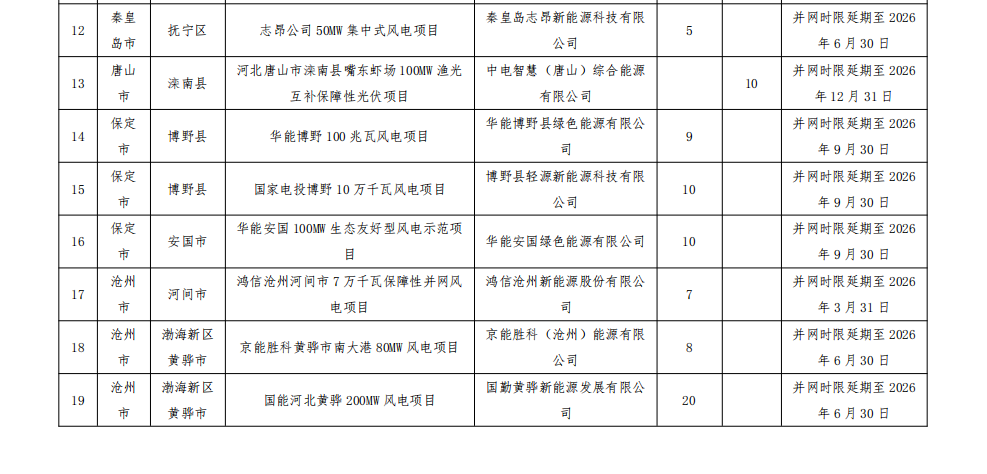 按照《河北省風電、光伏發電項目開發建設管理辦法(試行)》要求,請各市進一步加強風電、光伏發電項目管理,推動后續項目嚴格按照并網時限要求建成并網,除不可抗力等客觀因素造成項目不能按期全容量投產的,未并網的項目一律取消、未并網的規模全部調減。