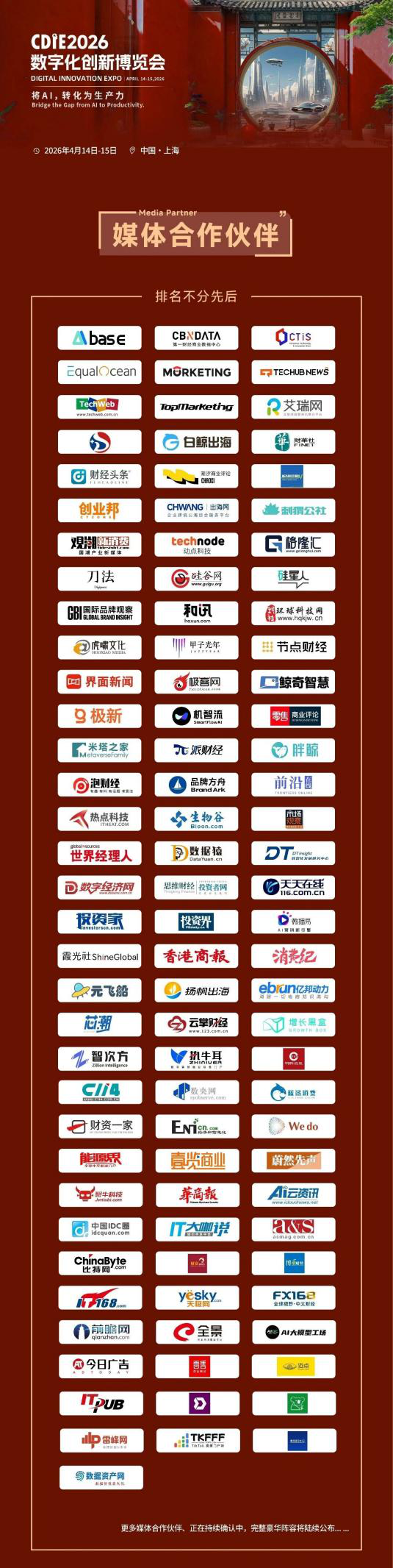 CDIE2026作為數(shù)字化領(lǐng)域的年度盛會,其籌備進程始終備受行業(yè)矚目。目前已成功攜手100+國內(nèi)外主流媒體與垂直領(lǐng)域頭部媒體達成深度合作,構(gòu)建起覆蓋科技、金融、制造、零售、消費等多個賽道的全媒體傳播矩陣。