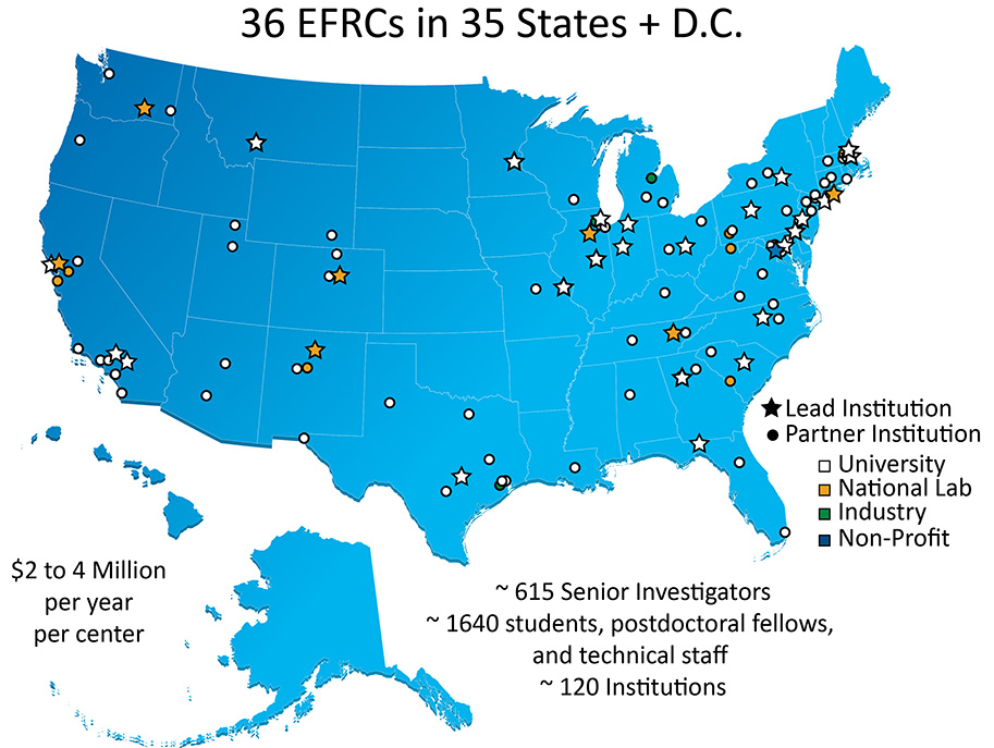 EFRC產生的知識將為太陽能,核能,能源轉換和儲存,電子和計算,燃料和化學品的生產,碳捕獲以及地球地下控制的未來發展奠定科學基礎。