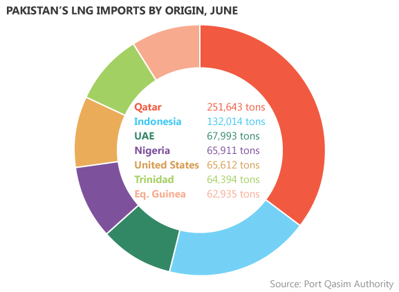 巴基斯坦6月份進口了710,500噸液化天然氣,同比增長85%。這是該國液化天然氣終端運營能力的第一個月。