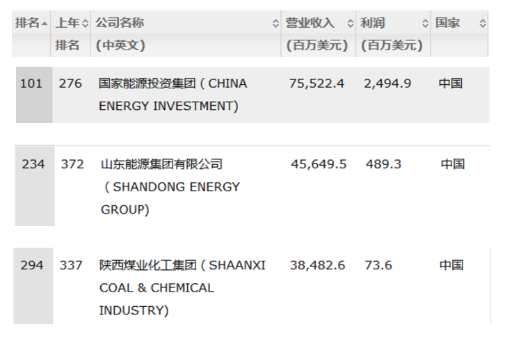 11家煤企進(jìn)入世界500強(qiáng),兗礦及河南能源首次上榜