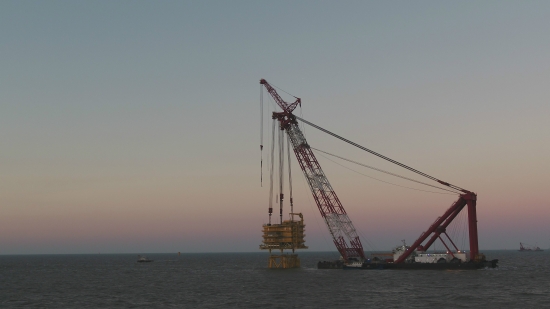 華東院勘測(cè)設(shè)計(jì)的亞洲離岸距離最遠(yuǎn)的海上升壓站吊裝成功