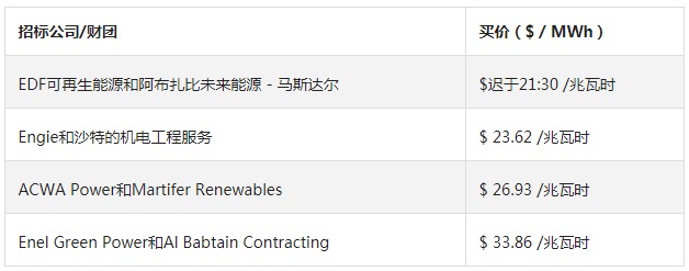 然而,值得注意的是,EDF和Engie并不是因?yàn)樗麄兂鰞r(jià)最低而無法保證偏好。“REPDO表示,公布的開標(biāo)結(jié)果不代表投標(biāo)人的排名或投標(biāo)人對項(xiàng)目RFP要求的遵守情況,也不構(gòu)成REPDO對投標(biāo)過程結(jié)果的決定,”沙特阿拉伯的MEIM在一份聲明中表示。