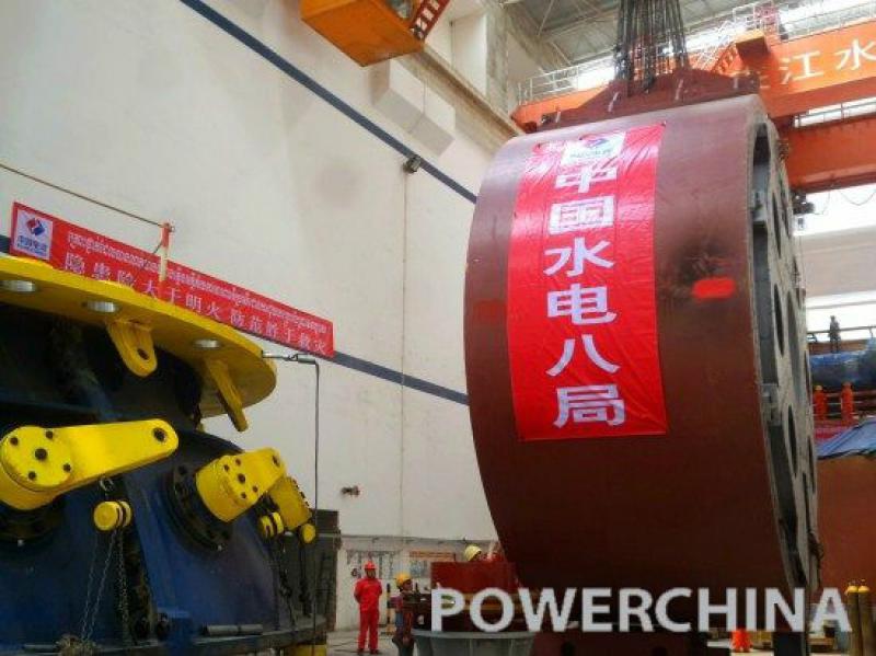 柬埔寨桑河二級水電站7#機組定子吊裝完成