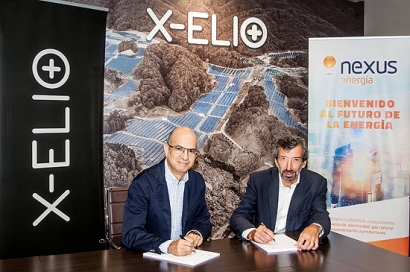 X-ELIO首席執(zhí)行官Jorge Barredo(izd)和NexusEnergía首席執(zhí)行官Joan Canela這些工廠的項目,每個產(chǎn)量為50兆瓦,處于最后的加工階段,其啟動計劃于2019年下半年開始。它們將產(chǎn)生超過200 GWh的綠色能源,大約相當(dāng)于到西班牙每年消費約6萬戶家庭。市場代表合同確認(rèn)了NexusEnergía的100%綠色性質(zhì)。