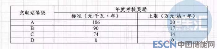 一是日??己霜?jiǎng)勵(lì),即每三個(gè)月對(duì)公用充電站的平均充電收費(fèi)標(biāo)準(zhǔn)、利用率等經(jīng)營(yíng)情況進(jìn)行考核評(píng)價(jià),引導(dǎo)企業(yè)通過(guò)優(yōu)化收費(fèi)標(biāo)準(zhǔn)、創(chuàng)新運(yùn)營(yíng)模式等方式提質(zhì)增效。根據(jù)考核情況,對(duì)考核評(píng)價(jià)最好的A級(jí)充電站給予每度電0.2元的獎(jiǎng)勵(lì),獎(jiǎng)勵(lì)上限為1500度/千瓦·年。