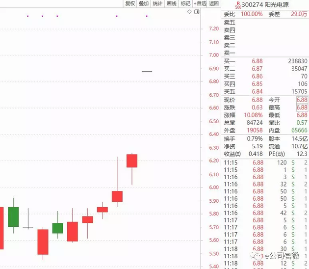 11月5日早盤,光伏板塊延續漲勢,隆基股份(601012)、陽光電源(300274)、錢江生化(600796)、林洋能源(601222)、通威股份(600438)等多只個股漲停。