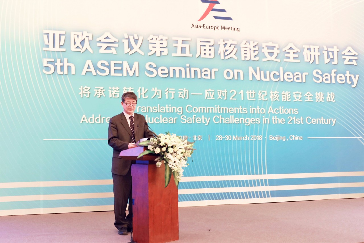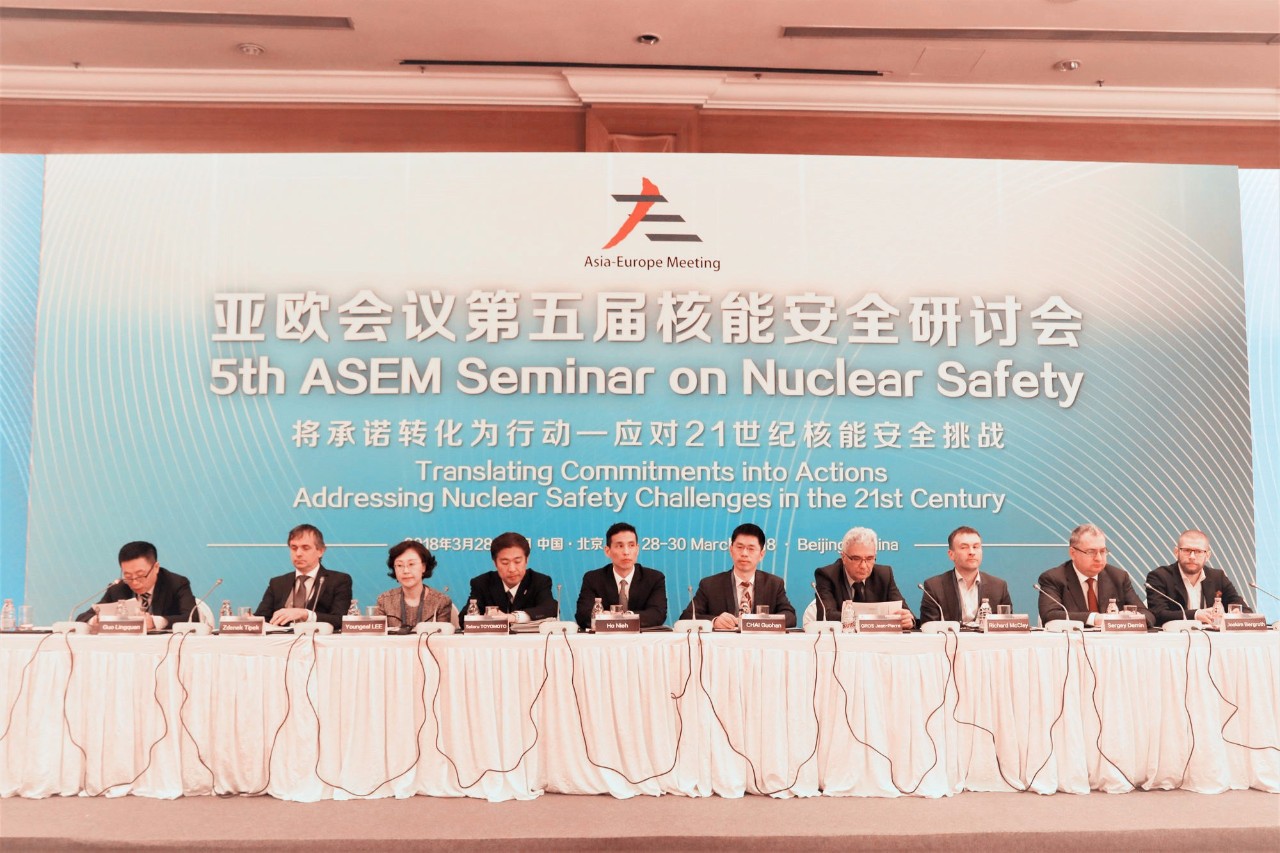 日本福島核事故后,亞歐會議核能安全研討會應運而生,2012年以來,先后在新加坡、立陶宛、印度尼西亞和西班牙舉行。本次會議由中國外交部、生態環境部、國家原子能機構共同主辦,來自英國、法國、巴基斯坦、新加坡、越南等20多個亞歐會議成員國及國際原子能機構等國際組織代表近200人與會。各方普遍感謝中方主辦第五屆研討會,贊賞中方積極推動亞歐核能安全合作。