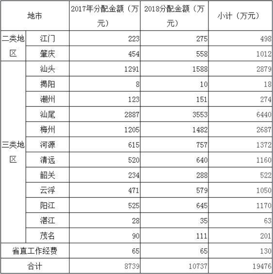 根據(jù)廣東省省級財(cái)政專項(xiàng)資金管理辦法有關(guān)規(guī)定,現(xiàn)將安排2017、2018年度省級新能源汽車推廣應(yīng)用專項(xiàng)資金計(jì)劃予以公示。公示廣東省新能源汽車專項(xiàng)資金1.9億元,其中2017年分配金額8739萬元,2018年分配金額10737萬元,詳細(xì)如下: