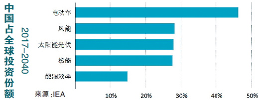 2016年,我國是全球最大的能源投資國,占全球能源投資總額的21%。隨著對燃煤電廠投資的下降,我國境內能源投資主要包括低碳電力、電網建設以及能效提升。預計截至2040年,中國將在能源領域投資共計64000億美元,電力行業尤其是低碳電力和電網建設,將占投資總額的三分之二以上,能效投資也將總計超過20000億美元。