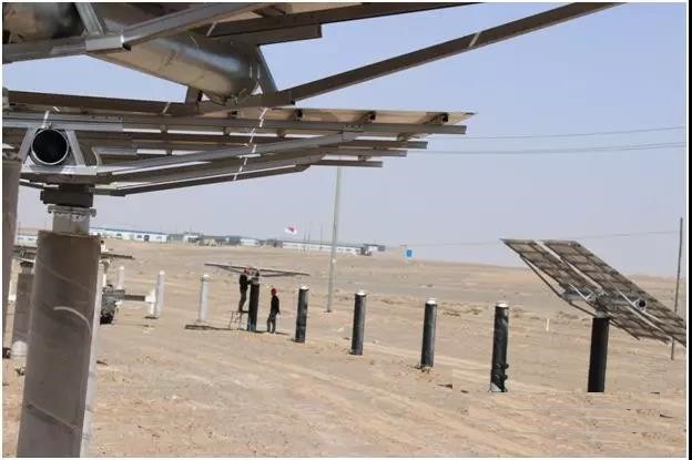 該項目是國家首批20個示范項目中2017年正式開工建設的項目之一。項目位于玉門市鄭家沙窩光熱發電示范區,計劃建設總裝機容量為50MW熔鹽塔式光熱電站,包括光島、儲熱系統、動力島、生產基地和運維基地,同時配套建設相關附屬設施。該項目于2016年9月取得項目備案文件,2017年6月初取得開工許可手續并全面開工建設;并在2017年封凍前完成了辦公住宿臨舍的搭建,動力島主廠房基礎澆筑,1號模塊二次反射塔基礎澆筑,定日鏡基礎交安,二次反射塔鋼結構已運至項目現場;2017年12月、2018年1月,項目業主和建設單位克服零下十幾度的高寒,完成了部分定日鏡的安裝施工。