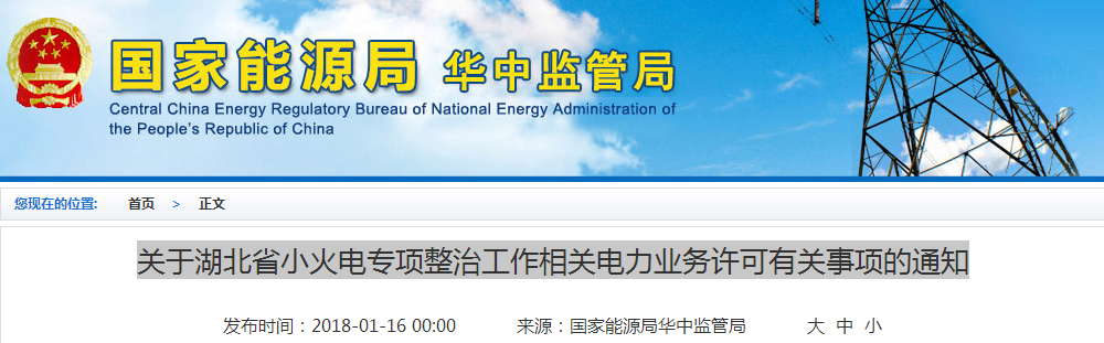 近日,國家能源局華中監管局發布關于湖北省小火電專項整治工作相關電力業務許可有關事項的通知,全文如下: