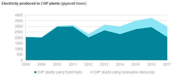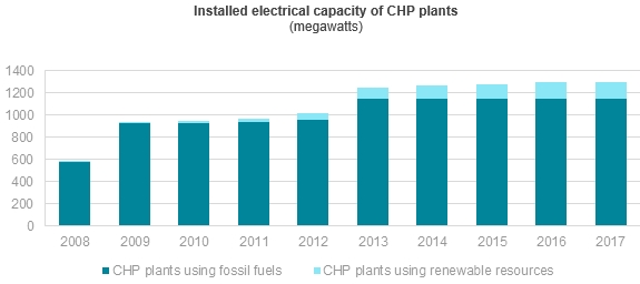 自2008年以來,由RES供??電的熱電聯產電廠的裝機容量增長了15倍。與2016年相比,這些熱電聯產電廠的裝機容量增加了8%,2017年達到155兆瓦。